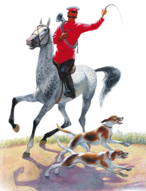 шевелил солому по дороге, а котёнок играл с соломой, и дети радовались на него. Потом они нашли подле дороги щавель, пошли собирать его и забыли про котёнка. Вдруг они услыхали, что кто-то громко кричит: «Назад, назад!» – и увидали, что скачет охотник, а впереди его две собаки увидали котёнка и хотят схватить его. А котёнок глупый, вместо того, чтобы бежать, присел к земле, сгорбил спину и смотрит на собак. Катя испугалась собак, закричала и побежала прочь от них. А Вася что было духу пустился к котёнку и в одно время с собаками подбежал к нему. Собаки хотели схватить котёнка, но Вася упал животом на котёнка и закрыл его от собак.Охотник подскакал и отогнал собак; а Вася принёс домой котёнка и уж больше не брал его с собой в поле.