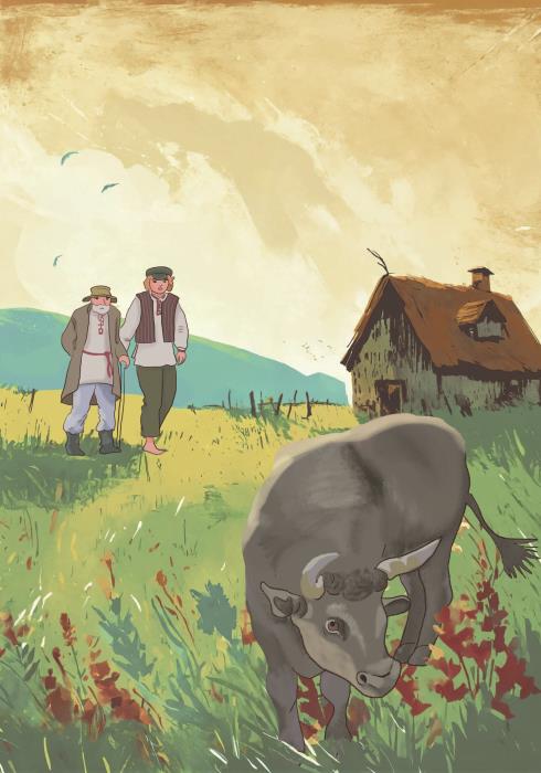– Вот что, сынок, давай-ка сначала снимем мерки да посмотрим, кто из нас от этого вола раздобреет.