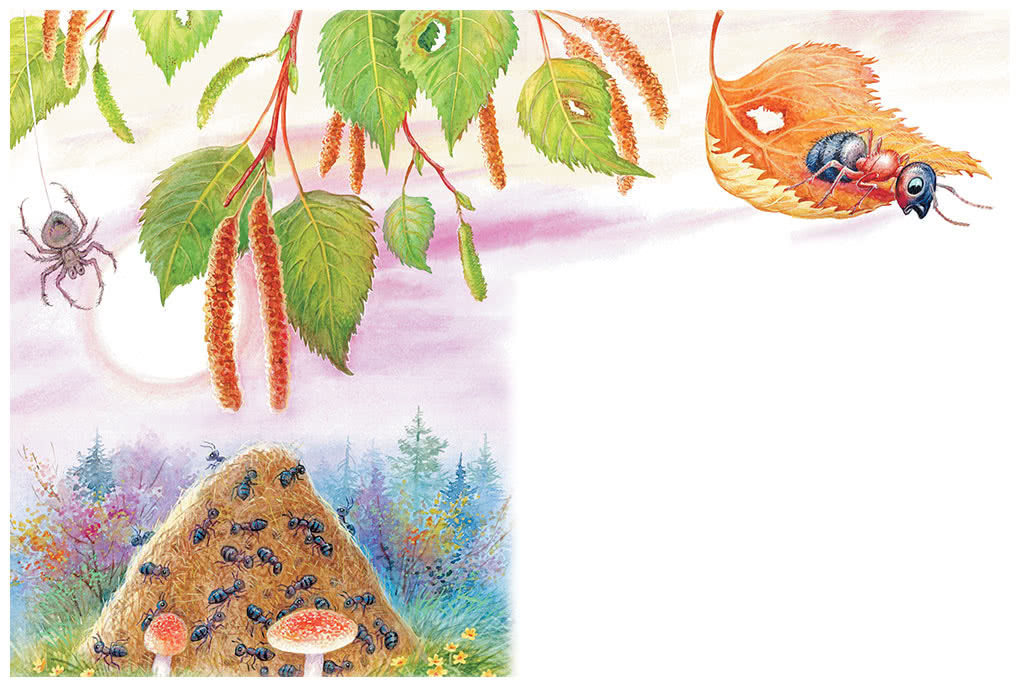 Залез муравей на берёзу, долез до вершины, посмотрел вниз, а там, на земле, его родной муравейник чуть виден.