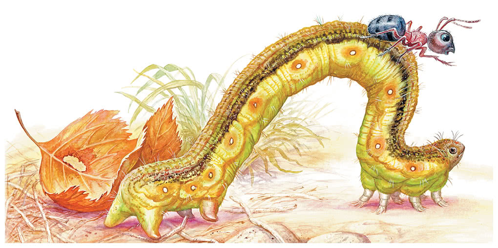 Смотрит Муравей: рядом Гусеница-Землемер лежит. Червяк червяком, только спереди – ножки и сзади – ножки.