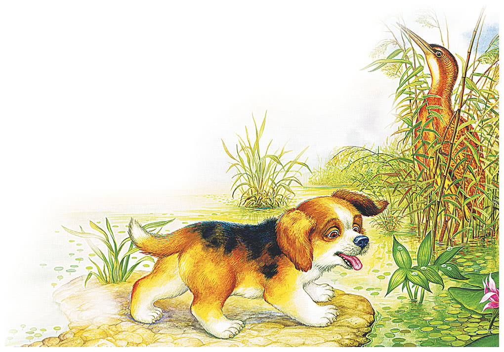 взад-вперёд,взад-вперёд.Щенок глаза выпучил, смотрел, смотрел – не видно Выпи в камыше.