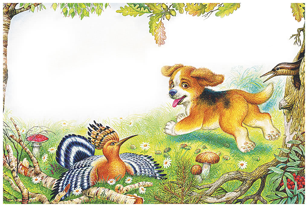 Удивился Щенок: куда же Удод девался? «Неужели я эту пёструю тряпку за него принял? Пойду поскорей маленькую птичку поймаю».