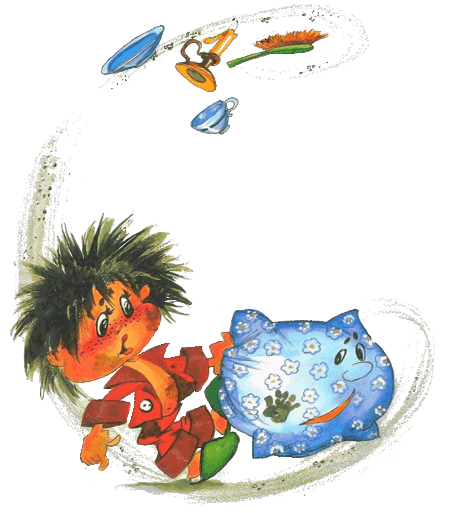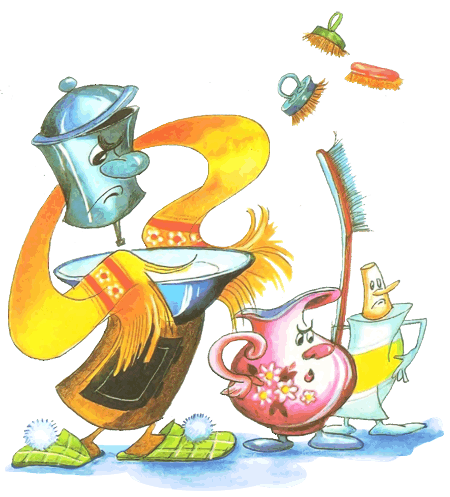 Одеяло Убежало,Улетела простыня, И подушка, Как лягушка,Ускакала от меня.Я за свечку,Свечка — в печку!Я за книжку,Та — бежатьИ вприпрыжкуПод кровать!Я хочу напиться чаю,К самовару подбегаю,Но пузатый от меняУбежал, как от огня.