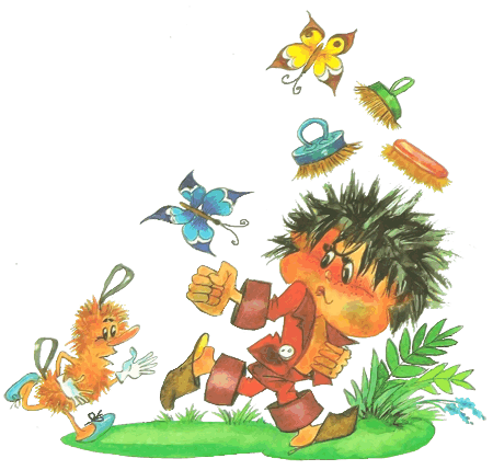 Как пустился я по улице бежать,Прибежал я к умывальнику опять. Мылом, мылом, Мылом, мыломУмывался без конца, Смыл и ваксу И чернилаС неумытого лица.И сейчас же брюки, брюкиТак и прыгнули мне в руки.А