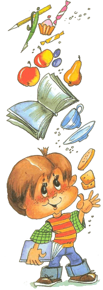 за ними пирожок:«Ну-ка, съешь меня, дружок!»А за ним и бутерброд:Подскочил — и прямо в рот!Вот и книжка воротилась,Воротилася тетрадь,И грамматика пустиласьС арифмётикой плясать.