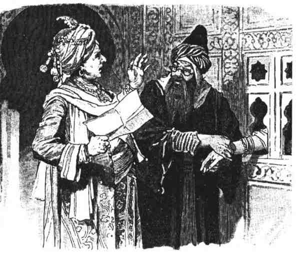 Приехав к Тиули, он велел доложить о себе как о враче Хакаманкабудибабе, и случилось так, как он рассчитывал. Чудесное имя чрезвычайно отрекомендовало его старому дураку, так что он тотчас пригласил его к обеду. Хакаман-кабудибаба явился к Тиули, и старик, побеседовав с ним едва час, решил подвергнуть лечению мудрого врача всех своих рабынь. Мустафа едва смог скрыть свою радость, что теперь опять увидит возлюбленную сестру, и с бьющимся сердцем последовал за Тиули, который повел его в сераль. [14] Они пришли в прекрасно убранную комнату, в которой, однако, никого не было.