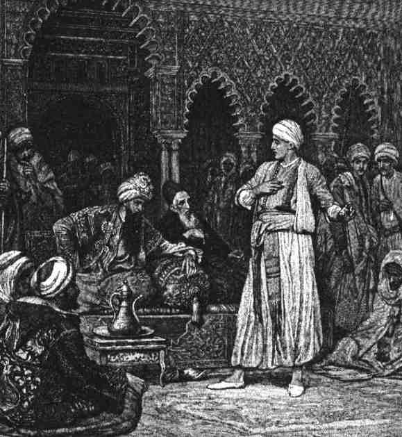 — Он сказал мне: «Хвала Аллаху после такого долгого несчастья! Это рынок моего родного города!» А спустя несколько времени из-за угла вышел какой-то знатный человек, и тогда он воскликнул: «О, какой дорогой дар неба — глаза! Я еще раз вижу своего почтенного отца!» А тот человек подошел к нам, посмотрел на одного, на другого и наконец купил того, с кем все это случилось. Тогда Альмансор воззвал к Аллаху, произнес горячую благодарственную молитву и прошептал мне: «Теперь я опять вступаю в чертоги своего счастья! Меня купил мой собственный отец!»