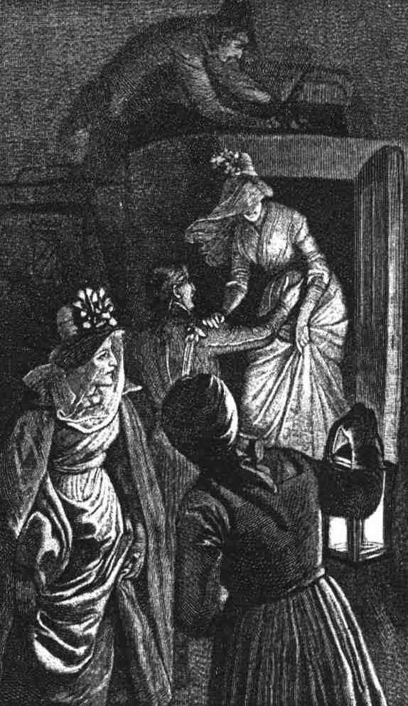 На этих словах рассказчика прервал какой-то шум перед харчевней. Было слышно, что подъехал экипаж, несколько голосов требовали огня, затем раздался резкий стук в ворота, и среди всего этого завывали собаки. Комната, отведенная извозчику и ремесленникам, выходила на дорогу. Все четверо вскочили и бросились туда, чтобы посмотреть, что случилось. Насколько можно было видеть при свете фонаря, перед харчевней стояла большая дорожная карета; какой-то высокий мужчина только что помог двум дамам в вуалях выйти из экипажа, в то время как кучер в ливрее распрягал лошадей, а слуга отвязывал чемодан.