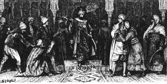Бенезар, почти обессилев от радости, бросился в объятия своего пропавшего сына. Тогда калиф с суровым видом спросил:
