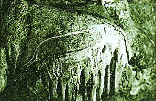 Создавать первые скульптуры древнему ваятелю часто помогала сама природа. В пещере Пешерль во Франции много наростов-сталагмитов. В их причудливых формах скульптор увидел массивное тело мамонта с мощной округлой спиной и длинным опущенным хоботом. Шерсть из каменных сосулек свисает до самой земли. Несколько полос красками — и мамонт предстал как живой.