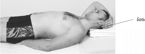 Упражнение 5.28. Постизометрическое расслабление верхней тонической порции трапециевидной мышцы слева Лягте на спину. Правой кистью с противоположной стороны обхватите голову и максимально наклоните ее вправо. Левой рукой держитесь