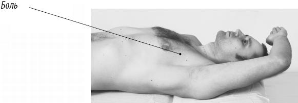 Упражнение 5.30. Антигравитационное расслабление малой грудной мышцы Лягте спиной на правый край кушетки. Правую руку полностью разогните в плечевом суставе и согните в локте под прямым углом. Рука должна свободно свисать с кушетки под действием собственного веса. Такое положение удерживайте в течение 20 секунд, а затем устройте перерыв на 20–30 секунд. Повторите 15–20 раз.