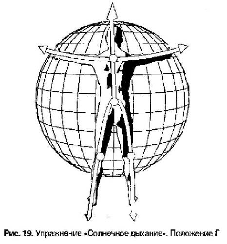 Охватываем частью сознания все 3 направления: руки, макушка, ноги. Прорабатываем все вместе 3 раза, с каждым вдохом увеличивая объем сферы, а с каждым выдохом – ее мощность и плотность. Не забываем о Солнце в Яру и на Небе (рис. 19).