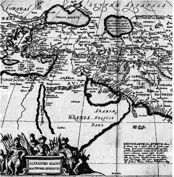 Рис. 14. Фрагмент карты походов Александра Македонского, составленной в Западной Европе в XVIII–XIX веках. Здесь также отмечена Мидия (MEDIA) и Великая Армения (ARMENIA MAIOR) между Черным и Каспийским морями, на месте северо-западной части Ирана и приблизительно современной Армении. Карта из собрания Государственного Исторического Музея (Москва)