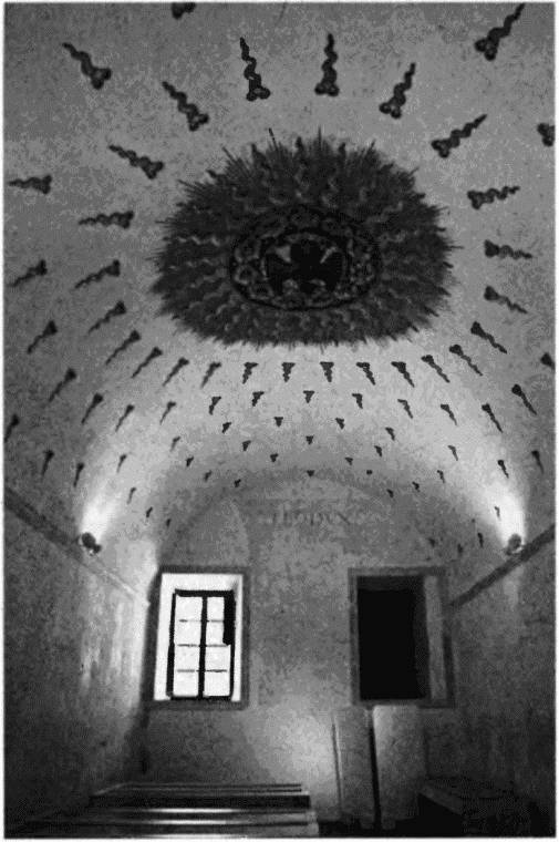 Рис. 36. Пустые помещения герцогской библиотеки. На потолке — роспись, по-видимому, недавно сделанная реставраторами. Стены голые. Фотография 2007 года