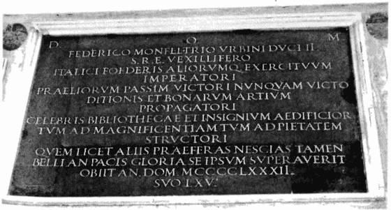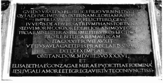 Рис. 40. Надпись над гробницей одного из урбинских герцогов. Выбита дата 1482 года, но надпись сделана уже в наше время. Старой надписи нет. Фотография 2007 года
