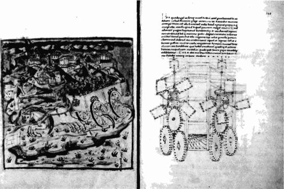 Рис. 47. Лист из книги Роберто Валтурио «О военном искусстве» (Roberto Valturio «De re militari»). Книга являлась собственностью герцога Урбинского Федерика (Federigo). Взято из [1374], с. 58, илл. 52