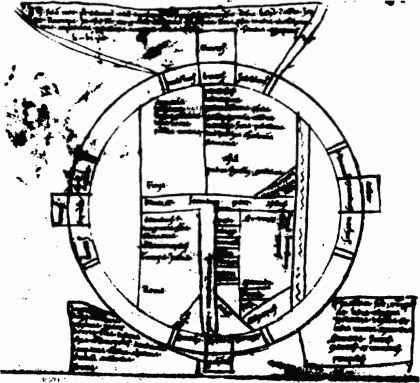 Рис. 89. Скандинавская карта якобы XIV века. Обитаемый мир разделен на три части Т-образным крестом. Взято из [523], с. 113