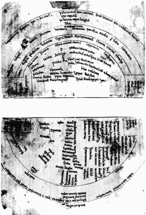 Видно, что перед нами действительно старейшие карты — так зарождалась европейская картография, начиная с XIII–XV веков. Эти карты еще очень условны и абстрактны. Так что главный интерес представляют в них не географические очертания, которые пока еще часто отсутствуют, а списки-перечни названий стран, городов и указания — что с чем граничит, кто где живет, кто куда и когда переселялся.