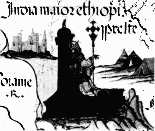 Рис. 93. Старинное изображение Пресвитера Иоанна (Пресвятого Иоанна), правящего в стране India maior ethiopi, то есть "Индия Великая Эфиопия". См. надпись над его головой. Таким образом, Русь-Орду ранее называли также Эфиопией. Взято из [1177], с. ЗЗЗ, илл.18.36