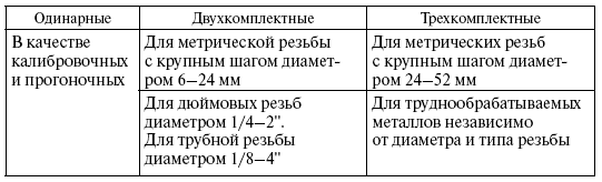 Машинные метчики применяются для нарезания внутренней резьбы на сверлильных и токарных станках всех типов. Ими можно нарезать резьбы за один или несколько проходов. За один проход нарезают резьбу с шагом до 3 мм, а за 2–3 прохода – резьбы с более крупным шагом, особо длинные резьбы, а также гладкие резьбы в труднообрабатываемых материалах независимо от шага.