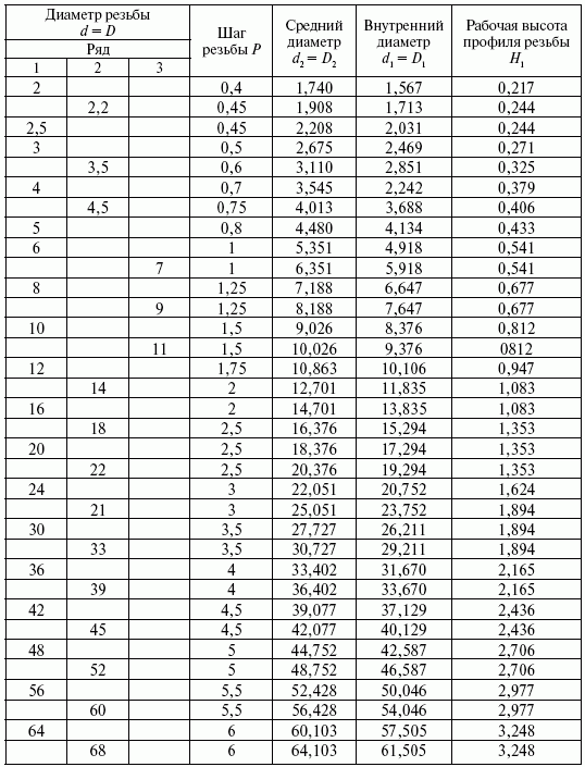 Шаг резьбы определяется расстоянием между осями двух идентичных точек следующих один за другим одноименных витков или расстоянием, на которое перемещается гайка по винту при выполнении одного полного оборота для однозаходной резьбы (табл. 13, 14).