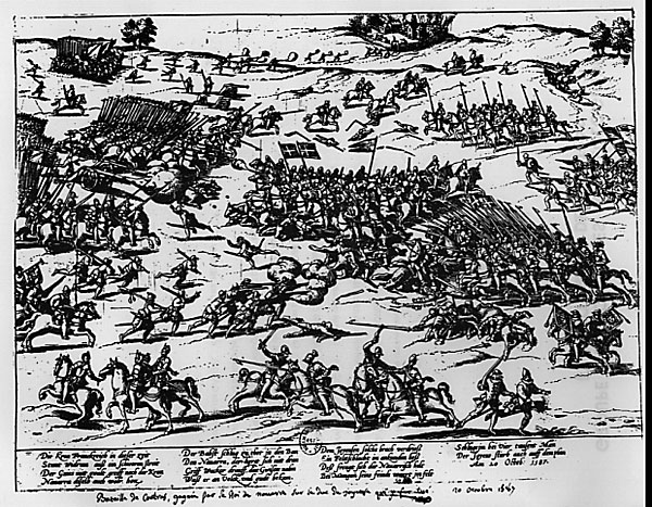 Итак, гугеноты начали отход, заманивая противника в ловушку. Роялисты неоднократно пытались навязать бой, но всякий раз безуспешно. Последний шанс принудить воинство Генриха Наваррского к сражению, пока оно не ушло вглубь Гиени, представился, когда гугеноты оказались в месте слияния рек Иль и Дронна, неподалеку от городка Кутра. Времени, чтобы переправиться на другой берег и продолжить бег к югу, уже не оставалось, и Генрих решил принять бой. Здесь на небольшой равнине размером менее чем километр на километр 20 октября 1587 года и состоялось первое победоносное для гугенотов