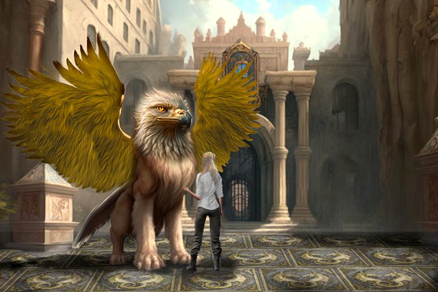 Пока мы подходили, грифон с большим интересом нас разглядывал. Как только приблизились, обнюхал сначала меня, а после мою соседку, которой, судя по выражению ее лица, не заорать было очень сложно. Согласна, если посмотреть на эти когти, становится страшно. Но вот глаза грифона… Смотрю в них и не вижу ничего пугающего. Улыбаюсь, поднимаю руку и решаюсь погладить грифона по морде.