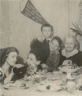 Приз ( вымпел ) за гонку «Азов-Т аганрог-Азов», 1952 год. Юля, я, тетя Мура с внуками. Фото Иры Золинской-Лимаревой
