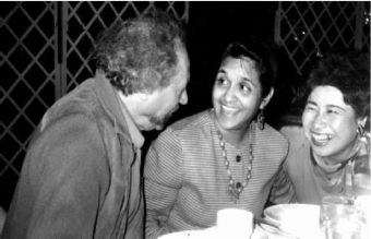 На конференции за обедом я и две поэтессы – одна из Индии, другая из Монголии.