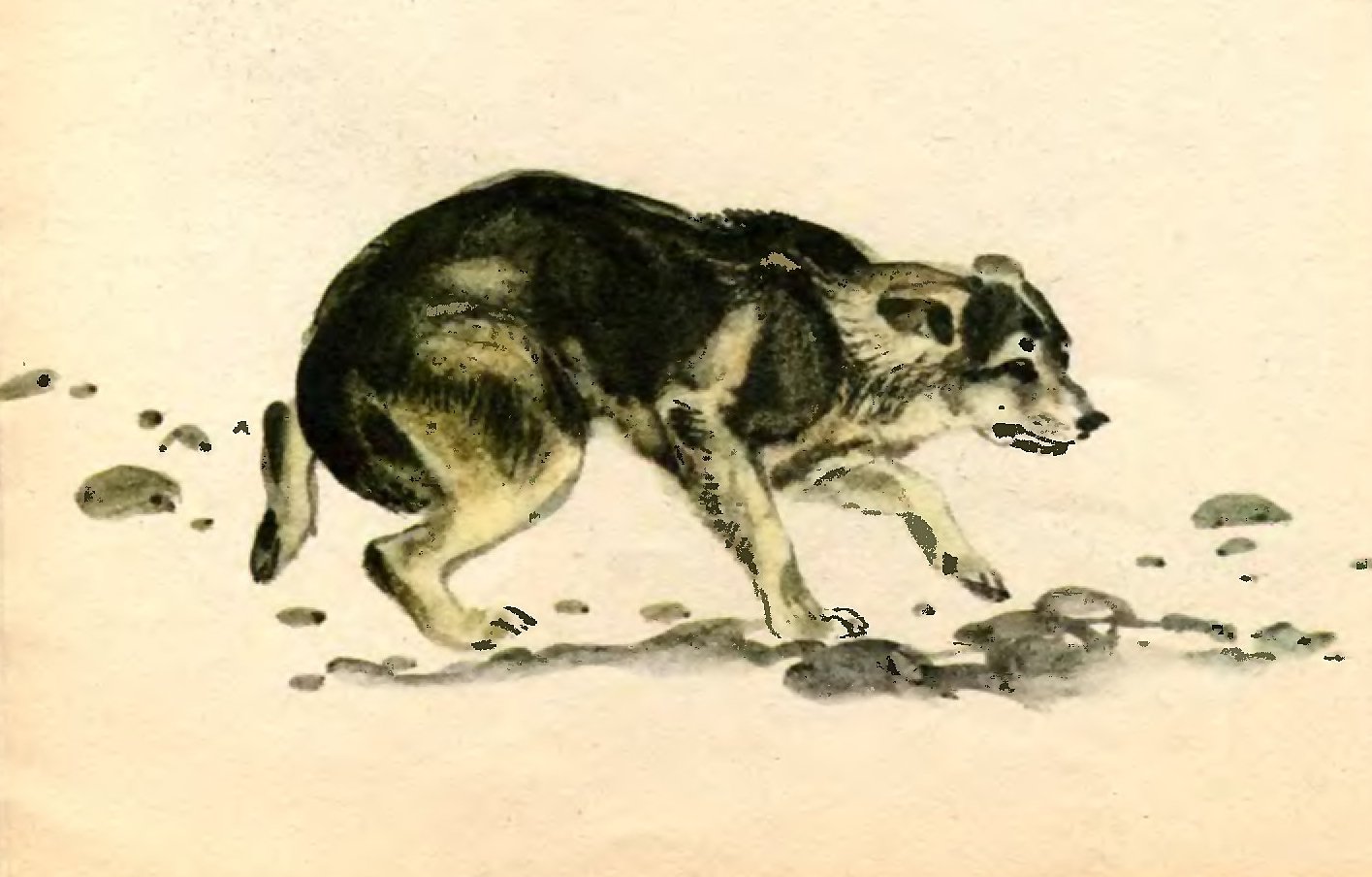 Стало собаці жарко. Тут не те щоб упіймати, а, мабуть, не дадуть прокляті ворони й поснідати як слід. Треба тікати. Собака підхопив качку і подався підтюпцем геть від моря.