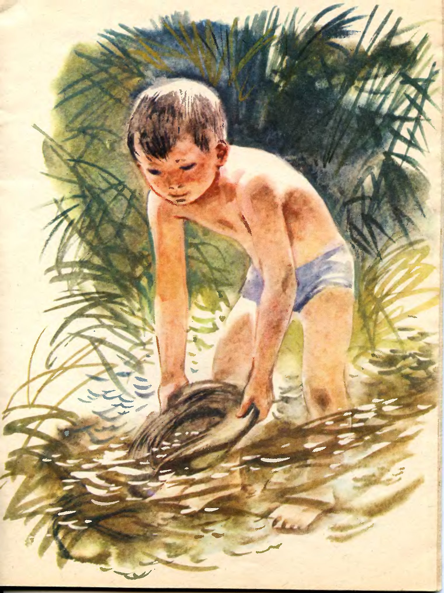 Був у Івана солом'яний бриль — батько йому купив на колгоспному ярмарку. Отож Іван скинув штанці і поліз у воду між очерет.