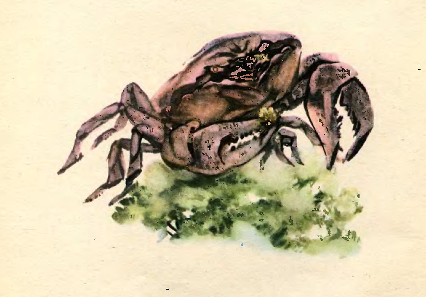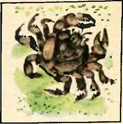 Величезними клішнями він зривав морський мох з каменя і ніс його до рота — то правою, то лівою клішнею, наче людина, що обома руками, без ложки, їсть кашу. Він робив це так швидко й ловко, що я розсміявся і підняв руку.