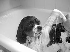 Собак нужно не только чистить, но и купать, так как чистка не позволяет полностью удалить грязь и перхоть с шерстного покрова и кожи собаки.
