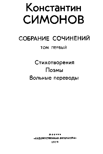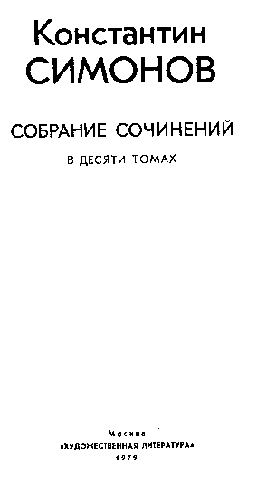 Собрание сочинений - это "материализованный" творческий путь писателя. И выпускаемые десять томов, в которых заключены все наиболее значительные произведения, созданные Константином Симоновым за долгие годы литературной работы, свидетельствуют о том, что вот уже почти четыре десятилетия он неизменно находится на авансцене литературного процесса. С той первой военной зимы, когда в "Правде" появилось стихотворение "Жди меня", в считанные дни сделавшее имя двадцатишестилетнего поэта, фронтового корреспондента "Красной звезды", известным всей читающей России на фронте и в тылу, - с той поры и до нынешнего времени не иссякает острый интерес читателей и зрителей к произведениям Симонова. Его имя постоянно присутствует в обзорах критиков, на театральных афишах, в репертуаре кинотеатров - так было в военные годы, и двадцать лет назад, и сегодня. Творчество Симонова волнует не только тех читателей, для которых его стихи и очерки, прочитанные когда-то в землянке или госпитале, стали частью их военной судьбы, но и тех, кто по молодости лет миновал то суровое время, но их представления о войне сложились в немалой степени под воздействием произведений Симонова.