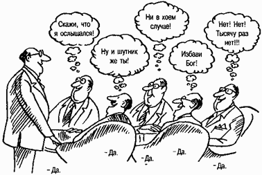 вызывающие искусственное старение листьев — листопад. — Примеч. перев.] с воздуха и карательные акции в сочетании с поддержкой со стороны Южного Вьетнама заставят правительство Северного Вьетнама сесть за стол переговоров. Война продолжалась, несмотря на предупреждения со стороны правительственных разведывательных служб и едва ли не всех союзников США. Эта военная авантюра стоила жизни 58 000 американцев и 1 миллиону вьетнамцев, вызвала поляризацию в американском обществе, лишила президента его поста и создала колоссальный бюджетный дефицит, который в 1970-е гг. привел к неконтролируемой инфляции.По мнению Джаниса, эти грубейшие ошибки — результат определенной тенденции, свойственной принимающим решения группам: подавлять инакомыслие в интересах единства группы. Этот феномен Джанис назвал огруппленным мышлением( groupthink). Товарищеские отношения повышают производительность труда в рабочих группах (Mullen & Copper, 1994). Более того, командный дух благотворен для морального климата. Но когда дело доходит до принятия решений, единомыслие может очень дорого стоить группам. По мнению Джаниса, почва, благоприятная для произрастания огруппленного мышления, — сплоченнаягруппа, члены которой связаны узами взаимной симпатии; относительная изоляциягруппы от инакомыслящих и авторитарныйлидер, дающий понять, какое решение он (или она) мог бы приветствовать. В момент планирования рокового вторжения в Залив Свиней вновь избранный президент Кеннеди и его советники ощущали себя единым целым. Аргументированная критика этого плана либо подавлялась, либо игнорировалась, и вскоре президент собственноручно подписал приказ о вторжении.