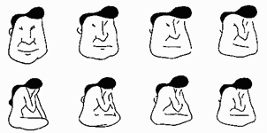 Рис. Б.2. Ожидания влияют на восприятие. Что нарисовано на правом нижнем рисунке — лицо или фигура? ( Источник: Fisher, 1968)