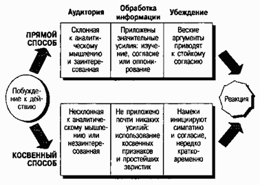 Иногда убеждение возникает в результате того, что люди вникают в аргументы и, поразмыслив над ними, выражают свое согласие. Подобный «системный», или «прямой», способ убеждения возможен только в том случае, когда аудитория — люди, привыкшие мыслить аналитически или заинтересованные в том, в чем их хотят убедить. Если же «побуждающая информация» не вызывает глубоких размышлений, реализуется более быстрый, «косвенный», способ убеждения: люди делают поспешные выводы, используя для этого эвристику или второстепенные признаки полученной информации. Поскольку прямой способ убеждения требует серьёзных размышлений и более «основателен», у него больше шансов вызывать устойчивые изменения в установках и повлиять на поведение.