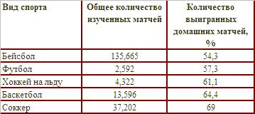 Таблица 8.1. Основные командные виды спорта: преимущества домашних матчей
