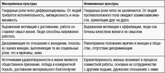 В деловых отношениях маскулинные и фемининные культуры также различаются.