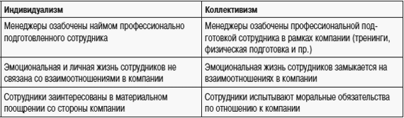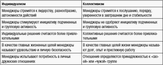 Таблица 17.8. Деловые отношения и поведение менеджеров в индивидуалистических и коллективистских культурах.