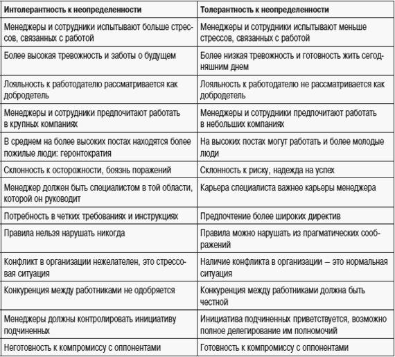 В культурах с разным типом отношения к неопределенности также наблюдаются различия в поведении и деловых отношениях менеджеров и сотрудников.