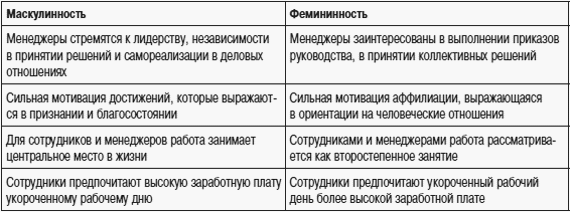 Таблица 17.10. Деловые отношения и поведение менеджеров в маскулинных и фемининных культурах.