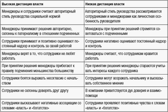 Таблица 17.11. Деловые отношения и поведение менеджеров в культурах с высокой и низкой дистанцией власти.