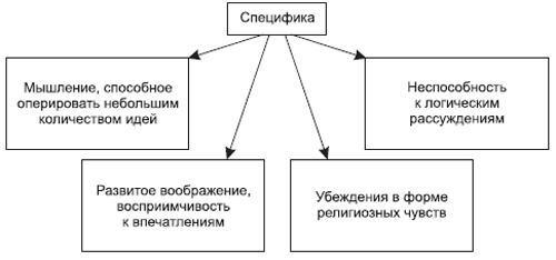 4. Убеждения человека толпы. Убеждения в толпе принимают специальную форму, которую Ле Бон называл религиозным чувством. Его главные черты Ле Бон характеризовал так: это обожание верховного существа, боязнь приписываемой ему магической силы, слепое подчинение его велениям, невозможность оспаривать его догматы, желание распространять их, стремление смотреть как на врагов на всех тех, кто не признает их. С того момента как в чувствах обнаруживаются указанные черты, они имеют религиозную сущность. В вечной борьбе против разума чувство никогда не бывало побежденным. Толпа бессознательно награждает таинственной силой политическую формулу или победоносного вождя, пробуждающих в ней религиозные чувства и подталкивающих к фанатизму. Нетерпимость и фанатизм, отмечал Ле Бон, составляют необходимую принадлежность каждого религиозного чувства. Эти черты встречаются в каждой группе людей, восстающих во имя какого-нибудь убеждения.Рис. 18.3. Специфика протекания психических процессов в толпе согласно Ле Бону.