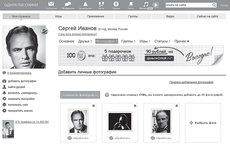 Рис. 4.40. Загрузка личных фотографий