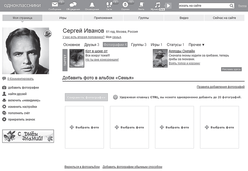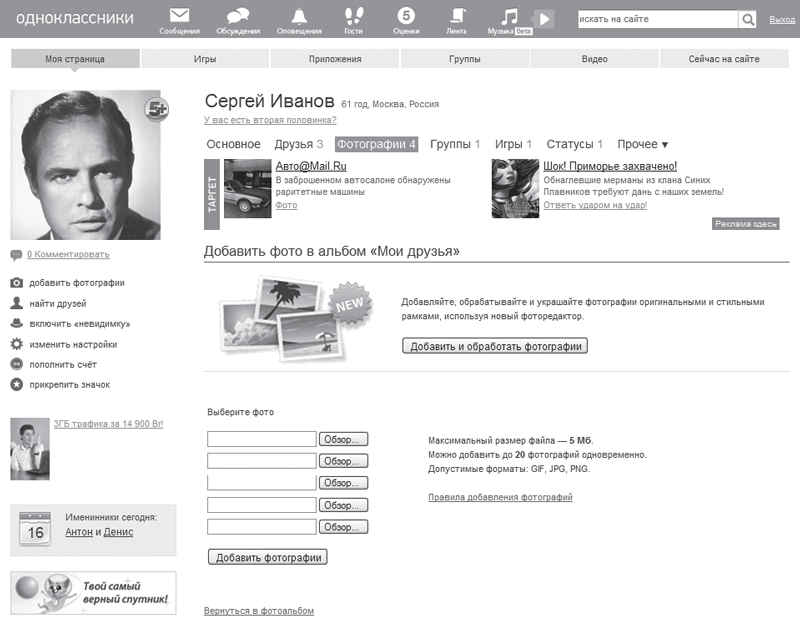 Вы попадете на страницу загрузки личных фотографий (рис. 4.40).