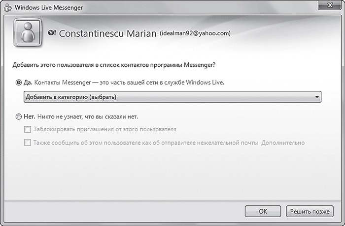 Рис. 3.7. Добавление нового пользователя в список контактов