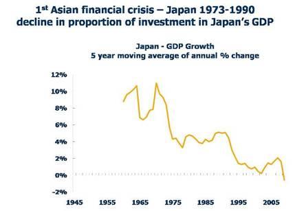 Наконец, возвращаясь к первому азиатскому финансовому кризису, остановимся на внутреннем развитии экономики Японии после 1973 года.