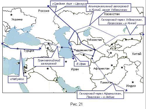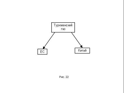 Таким, образом Туркмения оказывается своего рода "разборчивой невестой на выданье", которая, помимо существующих экспортных возможностей, получает очень перспективные предложения и со стороны Европы, и со стороны Китая (рис.22)
